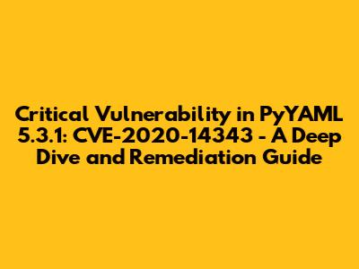 In the realm of software development, ensuring the security of our applications is paramount. One of the critical aspects of this is staying vigilant about vulnerabilities in the libraries and packages we use. Recently, a critical vulnerability, CVE-2020-14343, was identified in PyYAML-5.3.1.tar.gz, a widely used YAML parser and emitter for Python. This article delves into the specifics of this vulnerability, its potential impact, and how to remediate it.