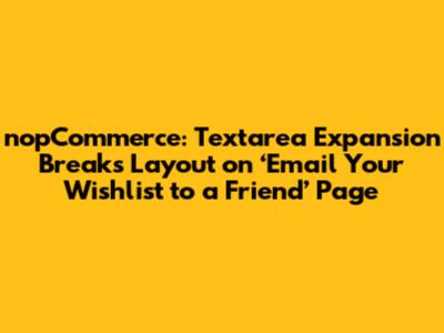 Have you ever encountered a situation where resizing a textarea on a webpage messes up the entire layout? This is precisely the issue we're diving into today within the nopCommerce platform, specifically on the āEmail Your Wishlist to a Friendā page. In this article, weāll explore the details of this bug, how it impacts user experience, and what the expected behavior should be. If youāre a nopCommerce user, developer, or simply someone interested in web development quirks, this is for you!
