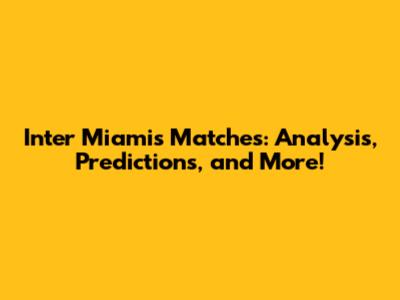 Inter Miami's Matches: Analysis, Predictions, And More!